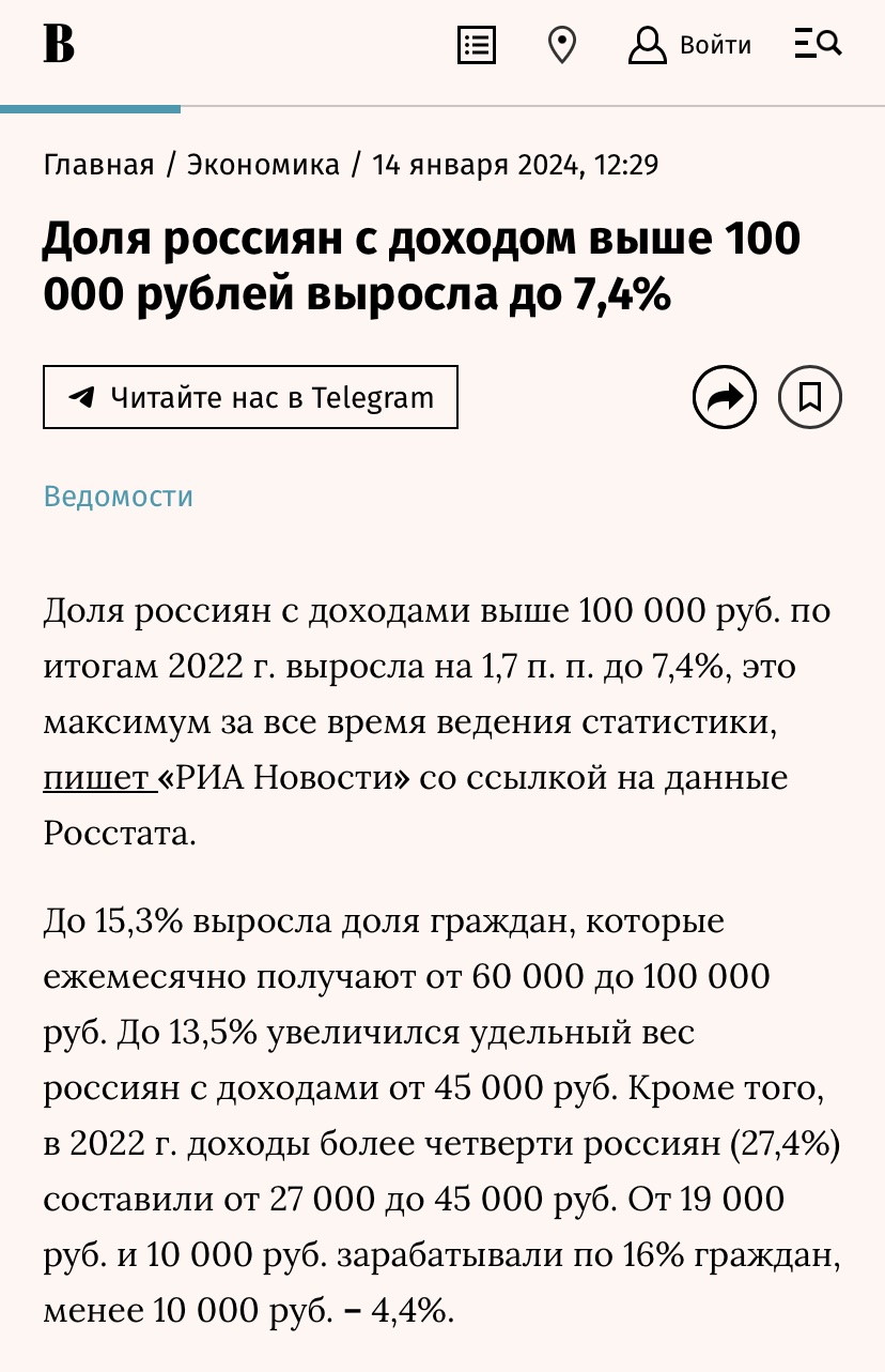 >>6262587 Ну так я и пишу, что местечко хорошее, потому что моя компания попадает в ограниченное множество компаний из пункта 2. А по поводу 1: - купить можно в ближнем поддсье; - даже завышенная цена на хату, но со ставкой в 6% - это очень даже вкусно. Сейчас цены на недвижку в стагнации, что на новострой, что на вторичку, но скоро снова начнёт расти, как мне кажется. Война закончится, ключевую ставку подопустят и привет, ещё один виток инфляции. А так, была возможность влететь во вкуснейшую ипотеку в 22м, но я всё проебала, т.к. пришлось матери денег отгрузить. Теперь сижу локти кусаю и пытаюсь запрыгнуть в последний вагон.