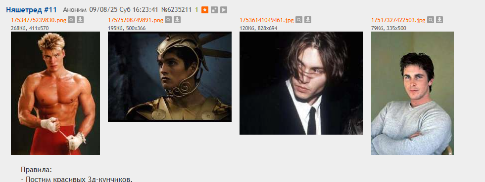 >>6288727 В случае богатых известных кунов похоже на прикрытие. Как у Макрона. Или ты в манямирке живешь и ждешь такая киану ривза, потому что среди кучи фанаток именно ты достойная? >>6288733 >Нахера ему скрывать в Америке то ориентацию Много знаешь известных и популярных голливудских актеров, которые еще и открытые геи? Особенно из 90х и 00х. Назови хотя бы двух открытых геев, которые сравнятся по известности с Ривзом. Кроме Маккелена, который из страны, где уже очень давно камингаутиться начали звезды. Короче, геи раньше мало денег в кассу приносили и все молчали обычно. А на старости лет уже много смысла нету выдавать себя. >>6288738 Первый не знаю. Знаю, что жалел, что не был секс символом в молодости, а значит может быть желание наверстать упущенное. Второй вообще в актеры пошел ради тяночек. Так что думай сама.