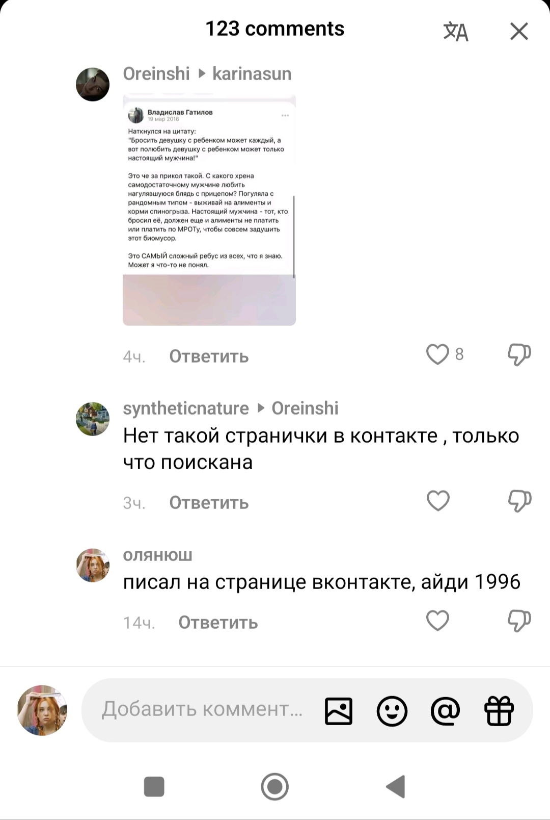 >>6237251 Также из любопытного: под некоторыми постами можно обнаружить комменты предположительно обиженных на него содержанок. Одну он отпиздил судя по контексту. Возможно она может про него что-то слить. Первый пик со свадебного видео, второй под постом с сыном