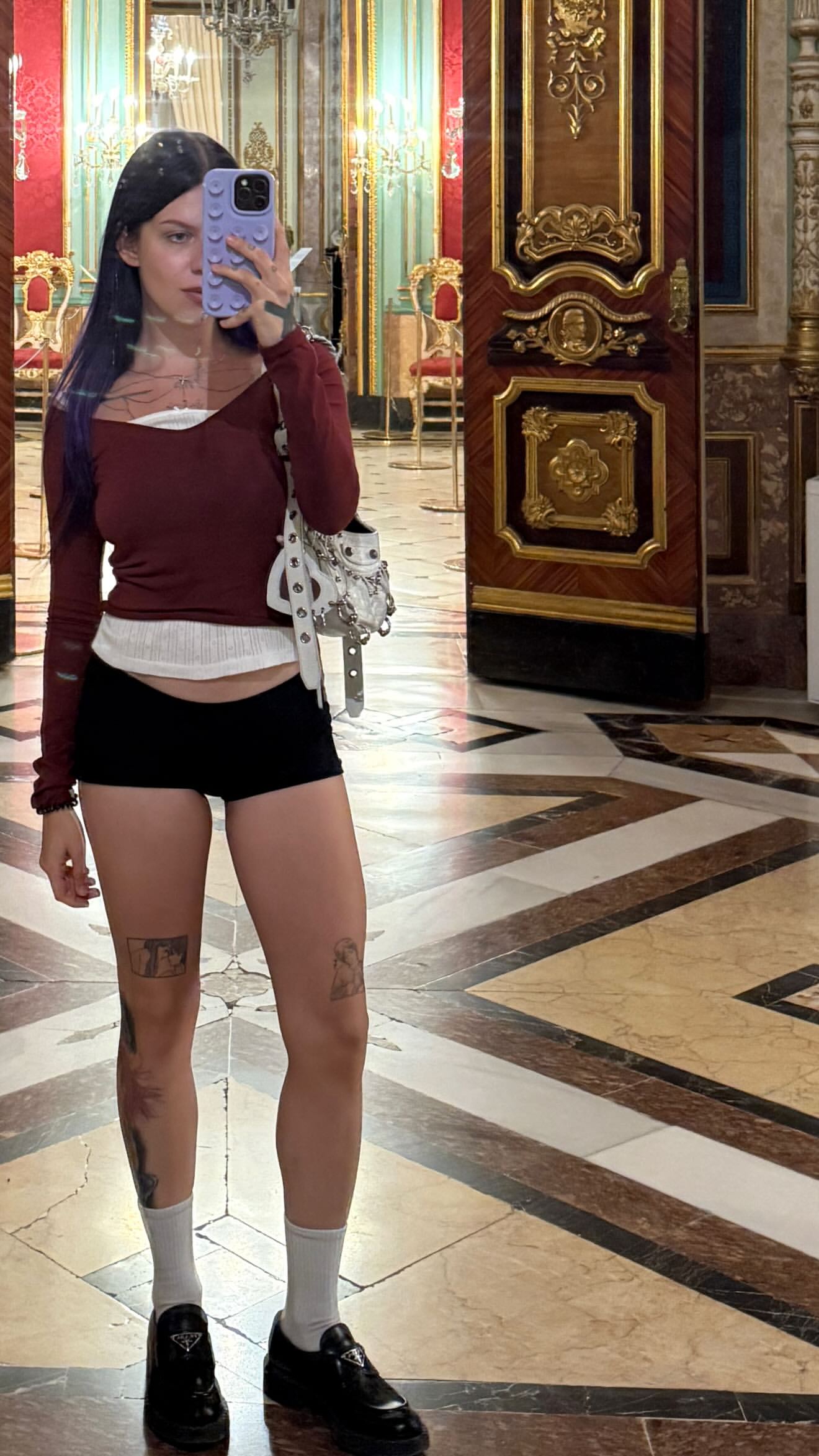 >>6236997 Огромная бошка, длинные ноги на фоне очень короткого тела. Но она обожает его ещё больше визуально укорачивать напяливая экстремально короткие шорты и юбки
