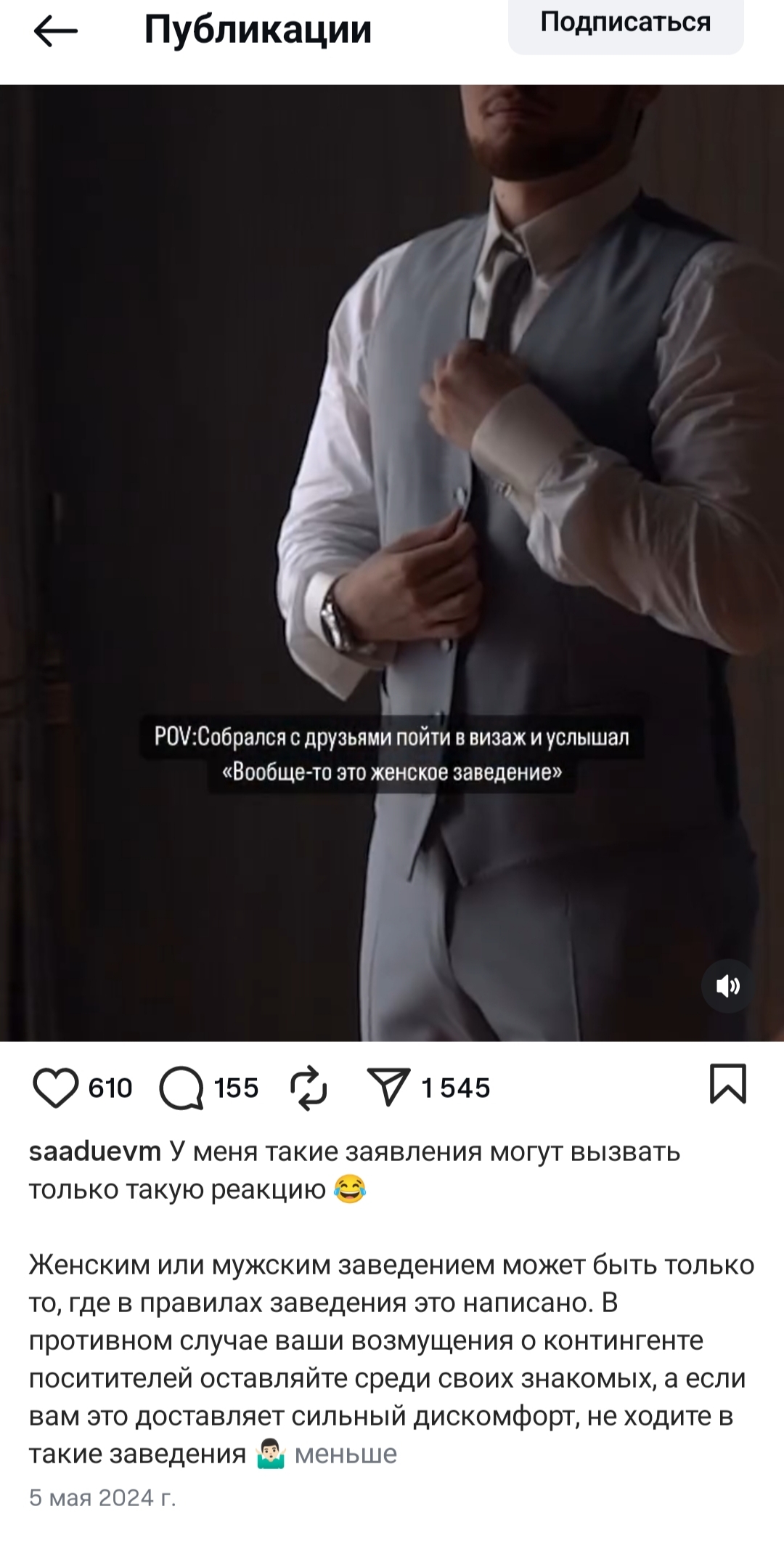 >>6237253 Посмотрите ее профиль в тг – это или эскорт, или что-то вроде. Похоже, у него плохая репутация среди проституток/эскорта или типа того. У его дружка, наверно, тоже. Жена ходить по проституткам не мешает — кавказская классика. Вангую, там треш уровня историй конченного Амирана.