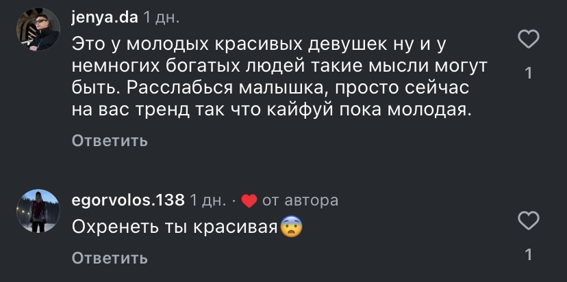 >>6237383 А после всплывшей фотки в комментах она, как образцовая девушка, начала стрелки переводить на свой же выбор чушка. Не то чтобы они неприкосновенны, но смешно, как маня сместила фокус на своего же парня.