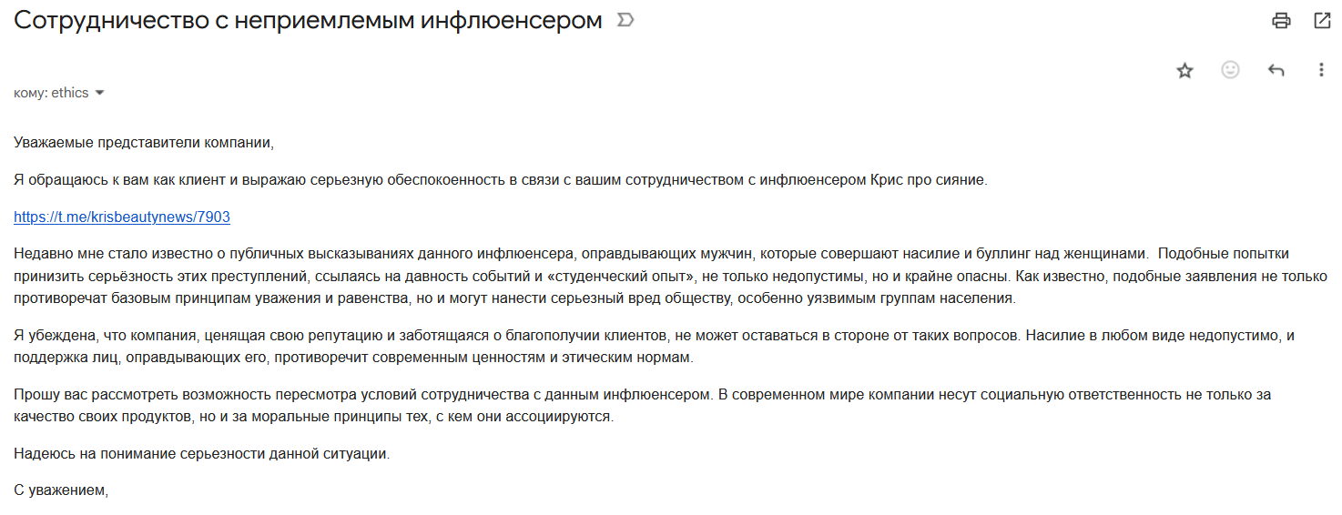 На ют у нее есть ссылка на почту, мне кажется, лучше туда. Сотрудничество/ РЕКЛАМА: [email protected] Лучше, если напишет кто-то, кто ее более-менее смотрит и плюс-минус знает, как ее зацепить.