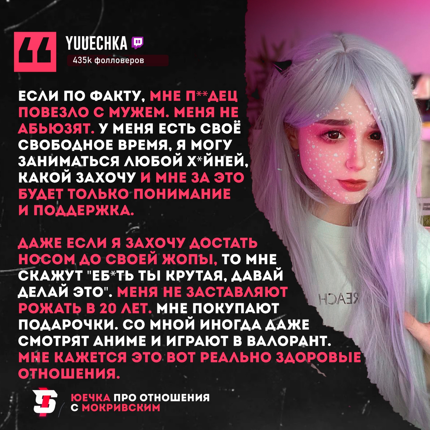 Загуглила Мокривского. Ебать что за червь с омежной челюстью. Эта Юлечка говноедка, как и собственно все стримерши. Периодически вижу как они гуляют с лютыми всратанами, дают им свое внимание, они начинают верить в себя. Критерии идеального мужа:не абьюзит смотрит маняме, не оплодотворяет, выглядит как инкельское говно скиннифэтное. На этом все