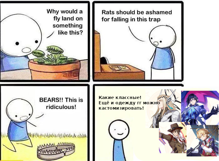 >>6277665 Большинство тян нравится а куны нет. Всратые омежки далия и этот челик дракон которого еще не показали нормально, додики Ифа и Кинич, кунов специально делают какими то не оч а все тян ахуенные (кроме лолей). Единственные ок куны внешне это Ризли и Варка