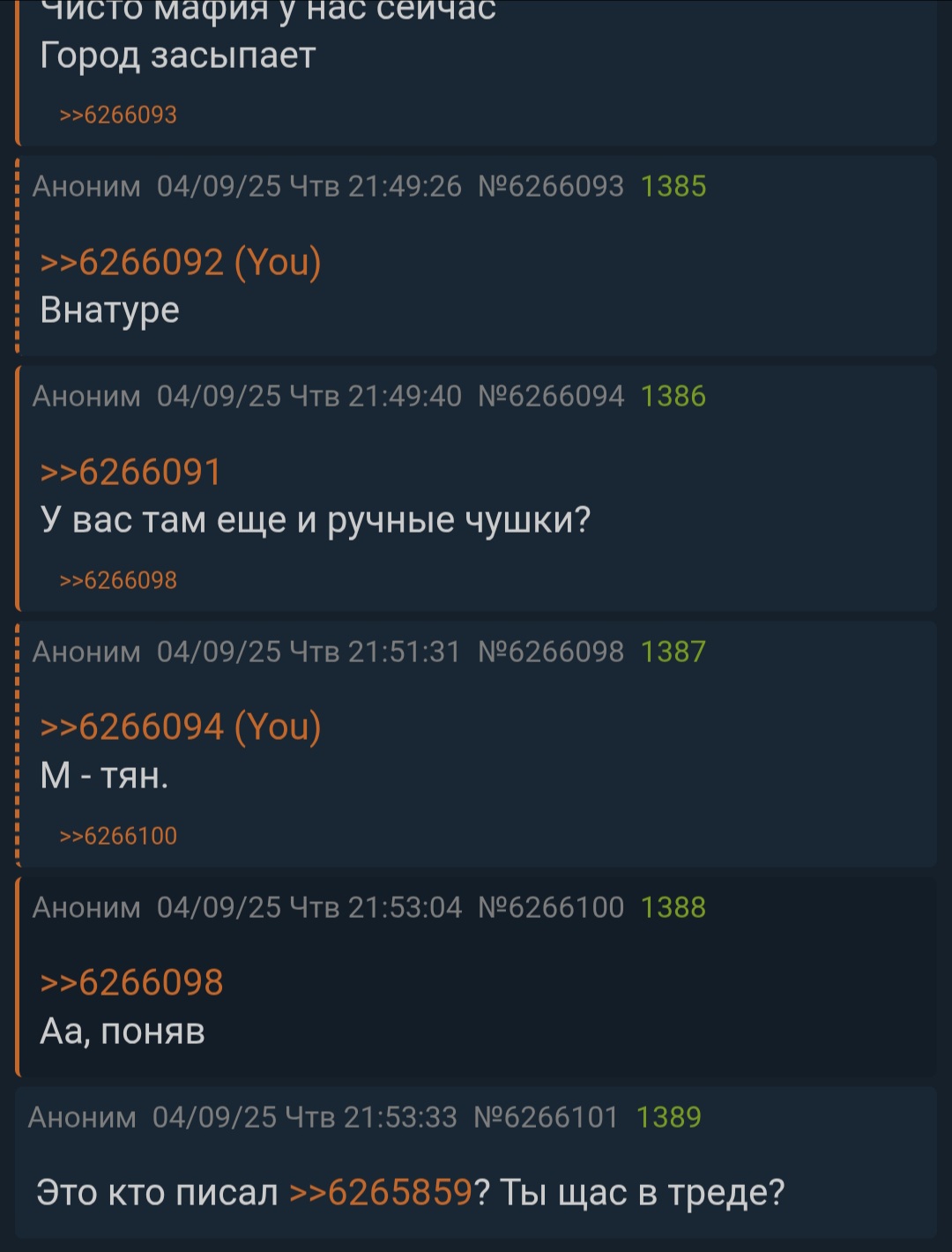 >>6265539 Там это было в контексте обсуждения фетишей. Кто то спросил про фетиши, кто то сказал что у нее редкий фетиш и не найти, я написала что мои вообще осуждаются и за них меня удаляют, не то что контента нет. Меня начали расспрашивать даже в следующем треде, кто то высказал догадки, я подтвердила, и далее начался срач и обсуждение. Теперь несколько персонажей этого треда носят это постоянно в каждый тред. Из за них треды вайпались, потому что они посреди НИХУЯ начинали писать про меня.