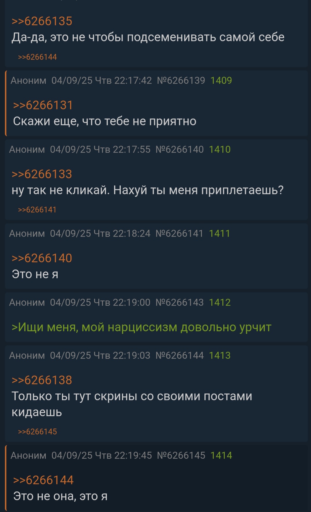 >>6263701 Вот с этого поста нацибучихи начался весь срач, сисы просто сидели и делились своим личным мнением о своём теле. Пришла она и начала всех обзывать, оскорблять, что не так что ли? Естественно, все сагрились.