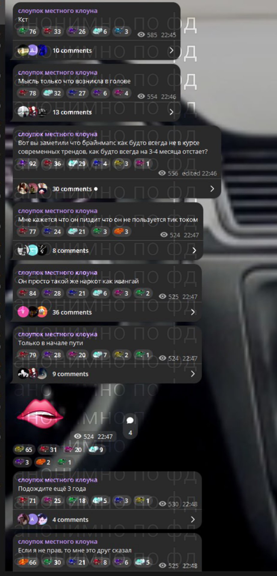 >>6287715 Мразелов это просто Хряк 2.0. По кд шутит про соли и меф, везде видит наркоманов, но почему-то забывает посмотреть в зеркало. Не верю, что он просто алкаш, имхо юзает сто проц. А Брайн наоборот безобидный няш, и за мемы и тренды он шарит, но в основном за омуриканские