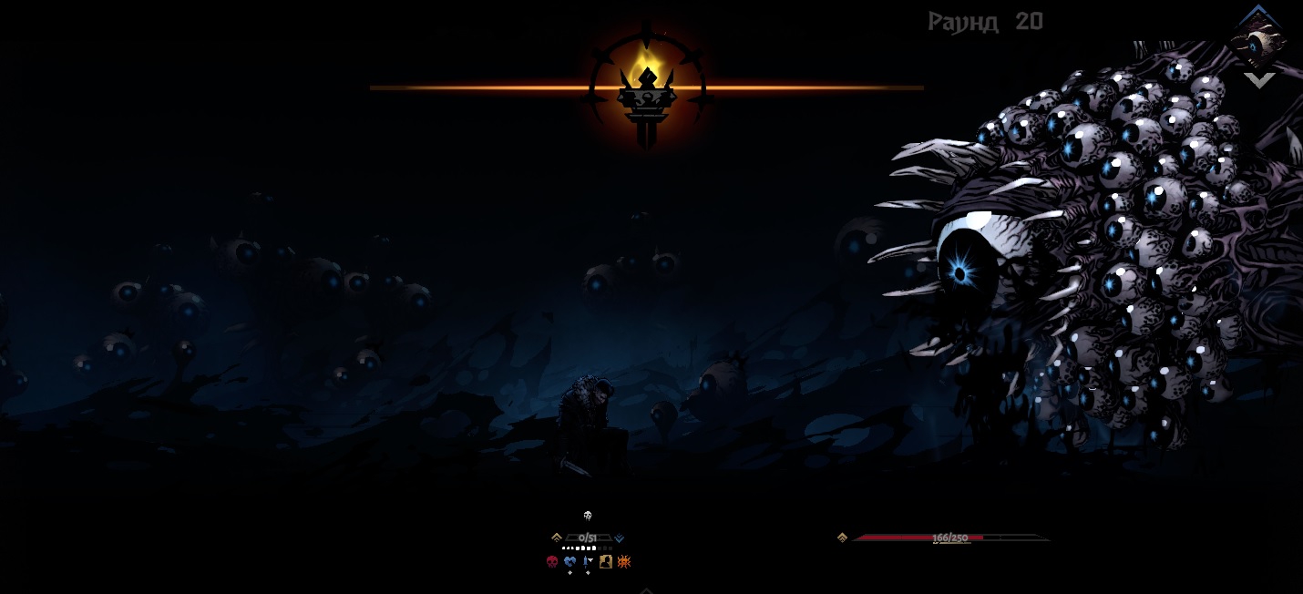 ...блять, это казалось невозможным, этот босс пати из четверых раз за разом выкашивал, а тут один его вынес, правда, с йоба-артефактом в виде башки Смерти и сам бой растянулся аж на 50 раундов.