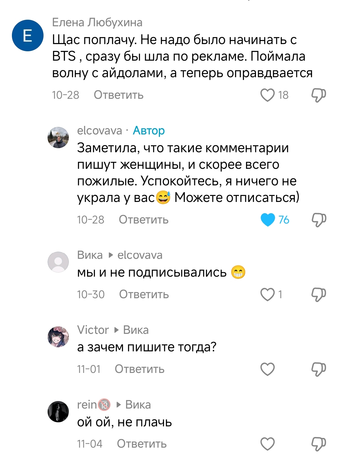 Я кстати и по арми заметила, что старение сильно ударило даже по их фанбазе. Они конечно держались, но с каким же облегчением они сейчас показушно повыкидывали карточки и прочий картон после w korea. О нет, бтс уже не те, слава изменила их