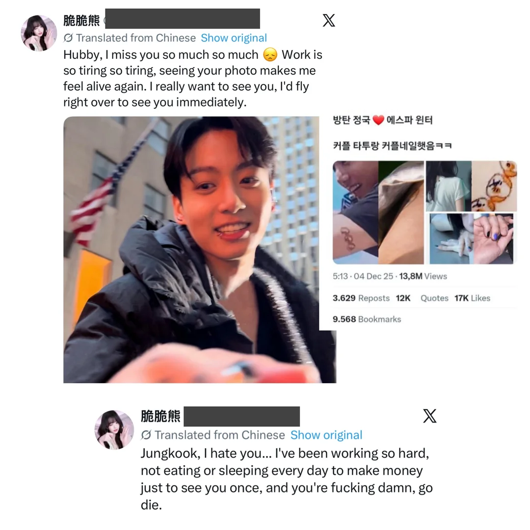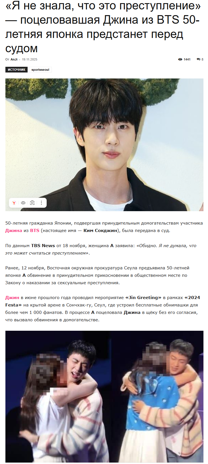 >>6341976 Джину тоже досталось от другой аджумы) они со своими парасоциальными отношениями доиграются, "хихи хаха арми мои девушки" и кормят делулу фанаток другие айдолы могут спустить на землю, а бтс нет, боятся потерять денежки