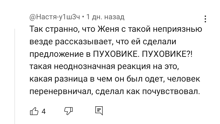 Ещё Марьяна говорила, что её мать тоже вышла за отца и родила ребёнка, когда ей 17 лет (?) было. Что-то такое. И типа для них это не было чем-то неправильным. Но потом всё равно бугуртили.