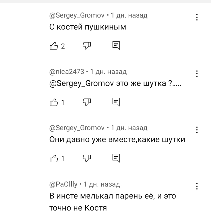 Это правда, что Гришечкина с Пушкиным встречается? И что они давно вместе? Под последним морнингом комментарии. И каково ей, что бывший Шакулие женится на некой Кате?