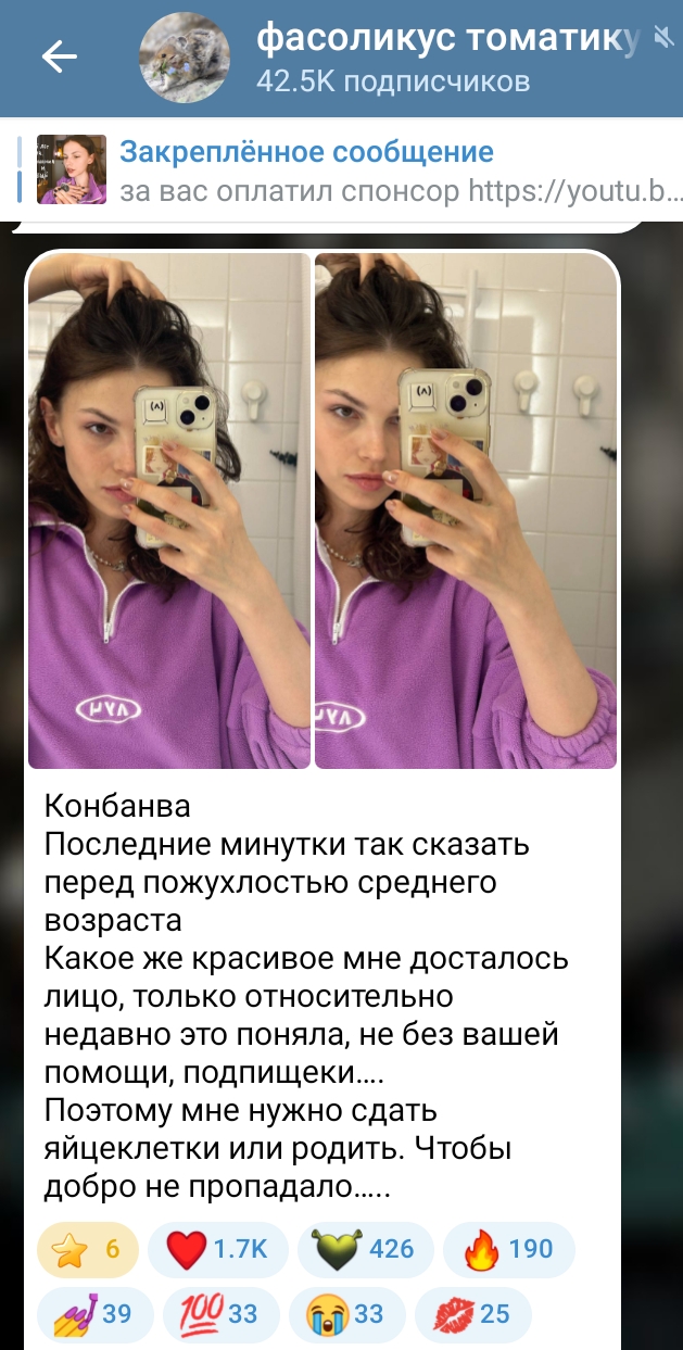 >>6286791 Позывной Блаженная Тиктокерша, растит ребенка Марка с каким-то серьезным заболеванием, муж от нее съебался или сдох, она нашла себе зумера, выставляла то какой он хороший отец Марку, знаменита рейджбайтами по типу "отдала вторую дочь бабушке и навещаю ее раз в год" хотя на видео была дочь подруги, недавно рассталась со соим зумером тк по ошибке подумала что он изменял ей, но мб это очередной байт был, ей сложно верить до конца
