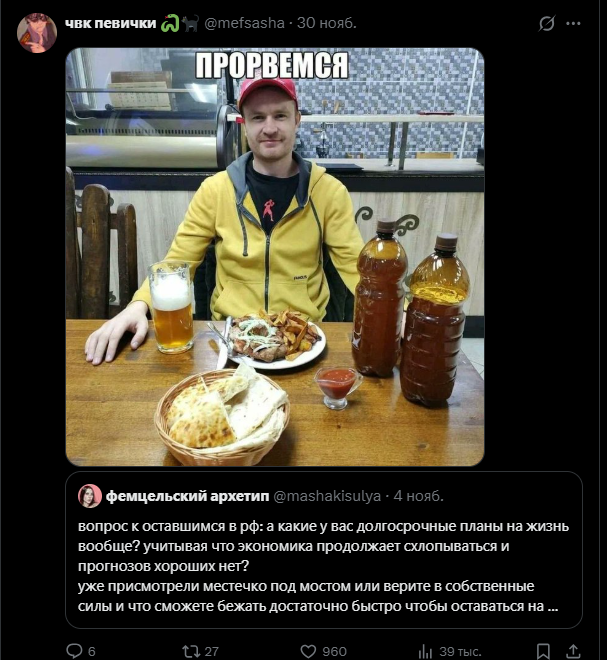 >>6353818 Я это сначала слышала от экскусовода в ереване, потом от релокантов в Сербии, в твиттере читала от киргизов, когда синусоиду травили. Теперь вижу такой же разгон про тбилиси. Полное шуе.