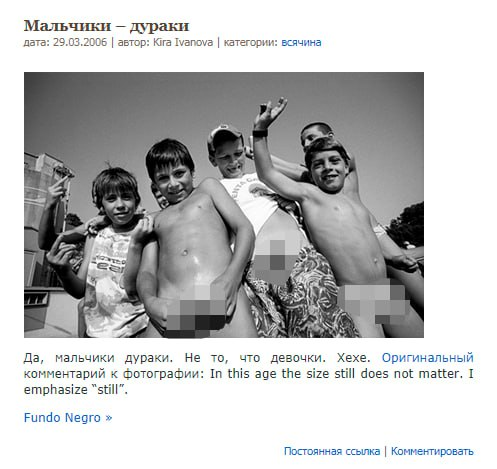 >>6307483 Все видела, ей похуй, ей кажется, что это пересекает грань и очень необычно. Она в телеге сама писала провокационные посты мол нет ничего сексуальнее невинности, фотки детей вроде тоже какие-то постила с намеками
