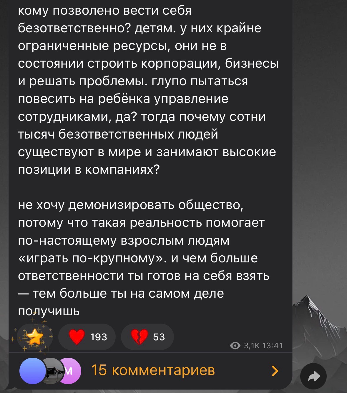 >>6307855 >грамотная рефлексия и планирование – привилегия, а не базовая данность. Вот я люблю такие дискуссии. Если развить твой тейк, то получается что значительная часть людей тупо недееспособны.