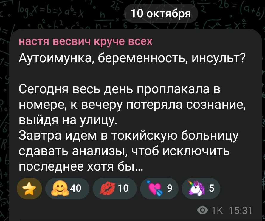 >>6307828 У меня во время месячных один раз было. Не выпила обезбол, думаю, может в этот раз не так больно будет (каждый раз на эту ловушку попадаюсь) в итоге мне стало настолько больно, что я каталась по полу, а когда решила пойти в ванну, ебнулась.