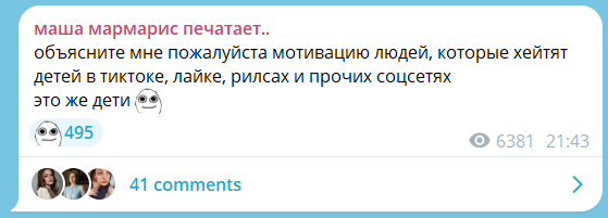 >>6308072 Меня бомбит даже не с её двойных стандартов, а то как она тупейшим образом оправдывается, стоит лишь кому-то подловить её на противоречиях. >ряяя делал в интернете А ты, блять, сейчас не об этом речь поднимала? Или теперь срать в реактах конкретных детей на свою огромную аудиторию лучше, чем рандомные токсичные выхлопы от каких-то рандомов в комментариях?