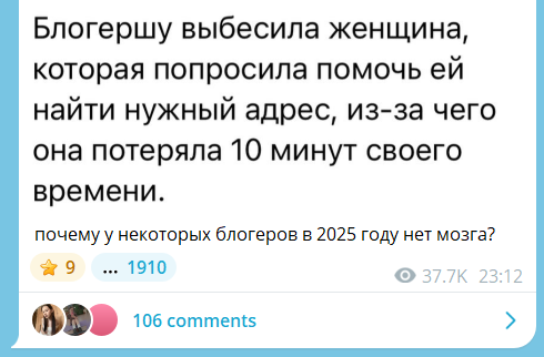 >>6307533 Да это всякие обиженные жизнью несчастные тетки сраки у которых муж ушел из семьи. Они и сами всратые. Я в инсте читаю комменты хейтеров и самые злые не бабки а миллениалши лол, у них самая шиза прет что я выгляжу как ваша дочь, на фоткх баба на свой возраст что и авторша, или у вас ожирение пишут бабе 165/65. Бумерши добрее. Только насчет возраста их разрывает, но это понятно