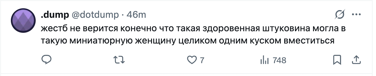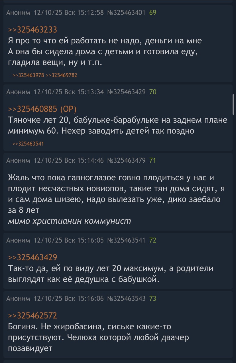 Имеджин ты на 20 лет младше мужика, у тебя болит и пизда и сиськи и все тело, а тебя фоткают в твиттер и называют милфой, сексуализируя тебя в первые дни как ты доставила ребенка этому долбоебу. Сделала бы она пост "мой скуф" с фоткой светова, думаю реакция была бы другой