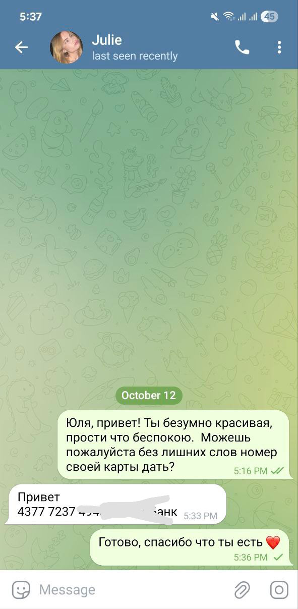 >>6310068 Есть более самостоятельные дети, есть вот такие олуши, которых любой может обмануть, обворовать, сломать. Нахуй она доверилась чухану, что он отдаст кредиты? Интернет у нее есть с детства, там все написано про кредиты, про доверие мужлу, чем она в интернете занималась, тиктоки смотрела и все?