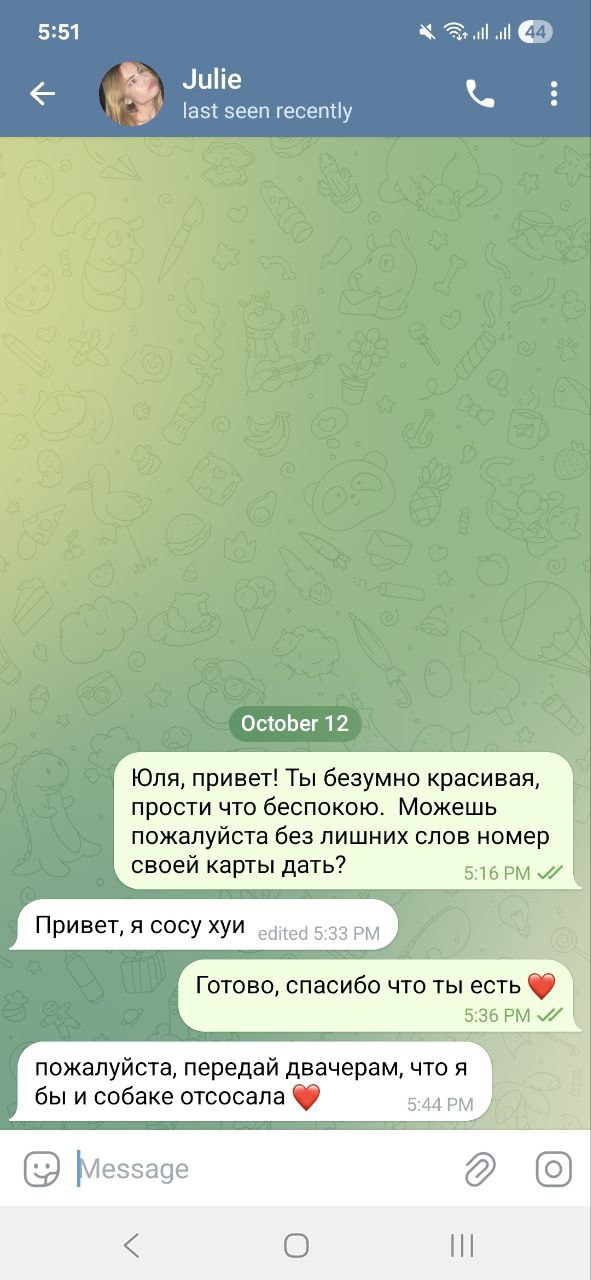 >>6310029 а она что выпрашивает хату? она вроде съебалась а они ей написывают в приказном тоне делай то делай се не делай так сделай такую прическу. сука они реально взрослому человеку указывают, как с трехлеткой разговаривают - ноутбук зачем взяла разобьешь, она что даунка его разбивать, ей 3 года руки не слушаюся? они еьнутые чтоли? чего они пытаются добиться относясь к ней как к ребенку от которого ожидаются косяки и которому необходимо бесприкословое послушание и родительский контроль? пусть идут в задницу.