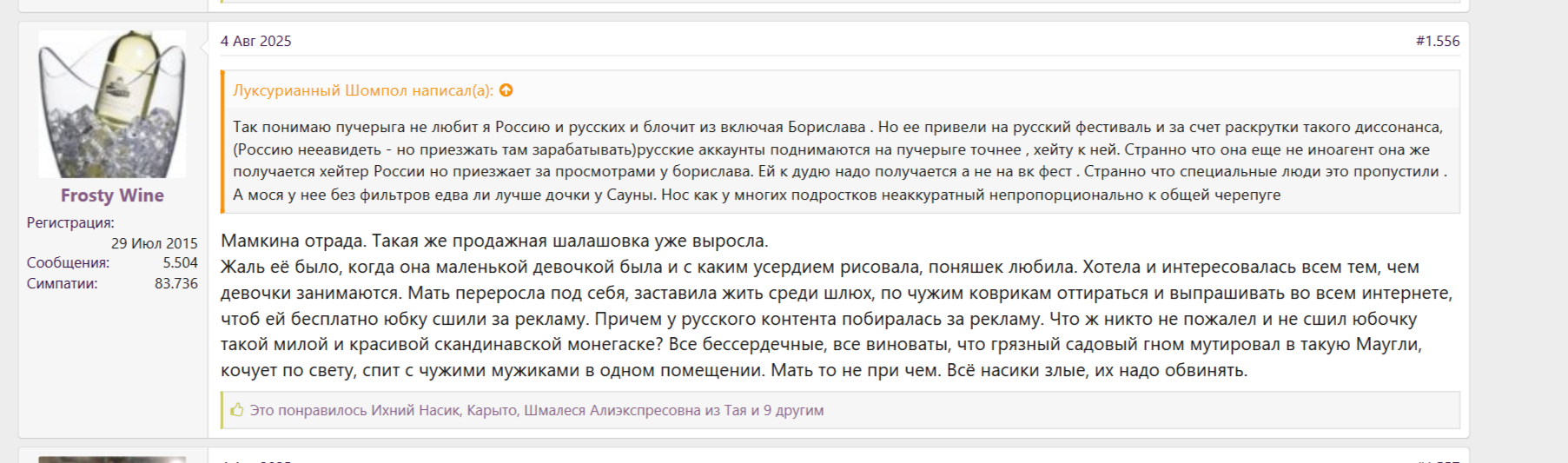 Я ненавистью тоже не сочусь, но люблю следить за какими-нибудь малоизвестными и странными персонажами с шизовайбами особенно. Обсуждала бы их с удовольствием, но они недостаточно лютые и интересные для багини или этого треда. Хотя на багине пара моих любимок появилось тоже, но как-то вяло, они не слишком популярные. А следить за всякими нормисками уровня Бони это вообще как-то странно, у них буквально соцсети - бизнес-проект и ничего реального интересного там не будет.