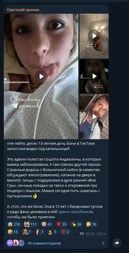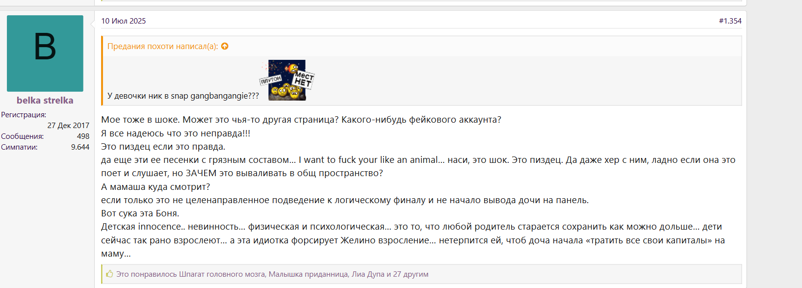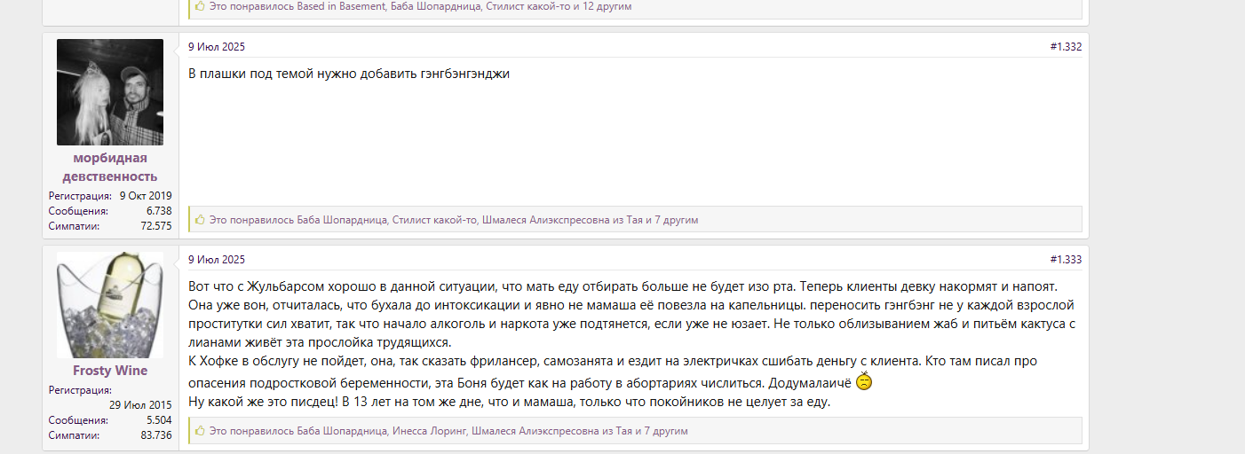 >>6310720 → Бляя нашла палату дочери бони на багине, бабсраки педофилки ебанулись сексуализировать 13лвл девочку, обсуждать какая она шлендра и следить за каждым ее репостом в тиктоке, даже кличку ей дали, жуть