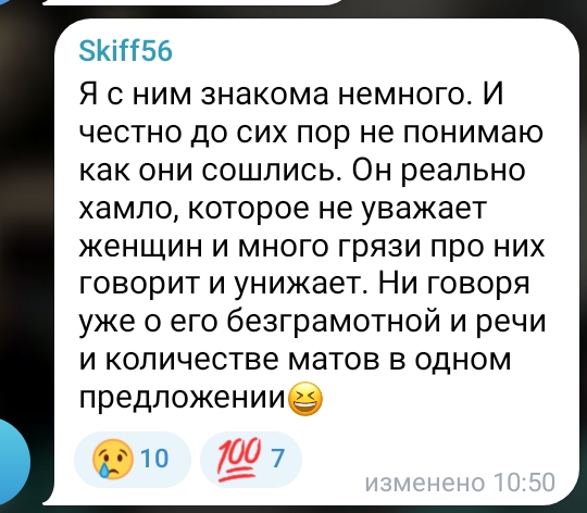 Наконец-то кто-то это сделал бл. Мне он окончательно опротивел, когда стал оправдывать придушивание девушек во время секса, мол, ярче оргазм от этого. Еще и Сулим за руку укусил, которая отдала ему свое место в подкасте. Какой же потешный пролактиновый барсучок-нарциссик.
