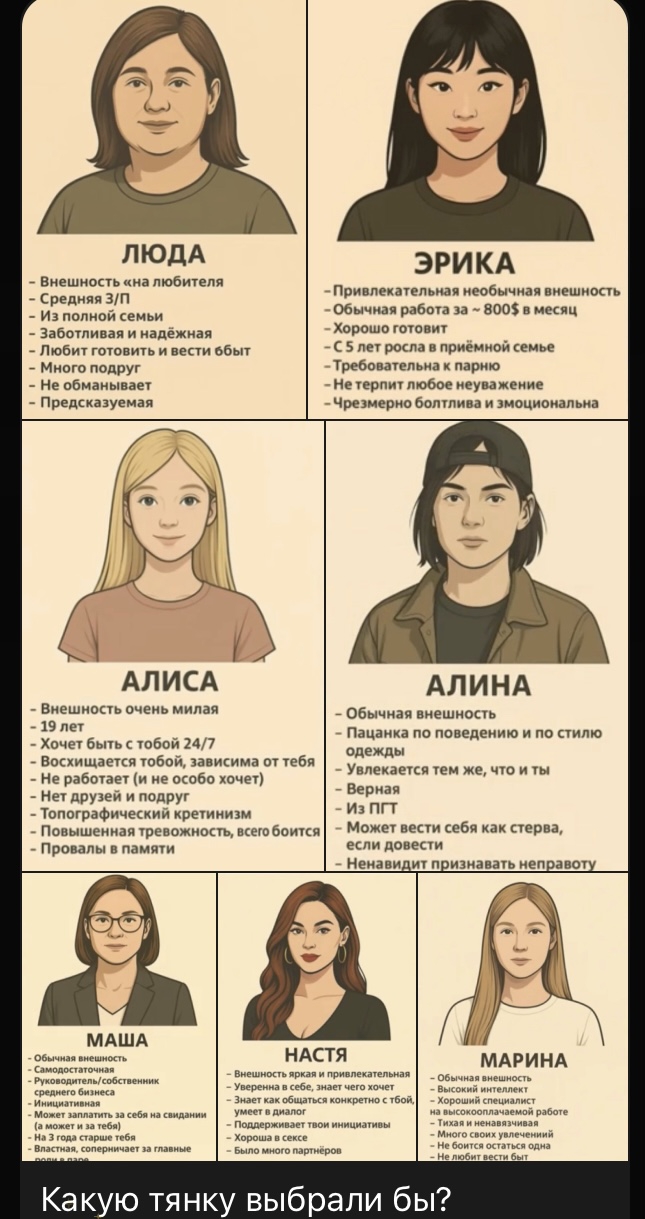 >>6312023 Я же написала, есть тян удобничихи. Их берут специально как не особо требовательную дыру под рукой. Но хотят конечно Стейси, просто лень жопу с дивана оторвать для Стейси. Бывают просто излишне ленивые или пугливые мужики, ну или нарцы.
