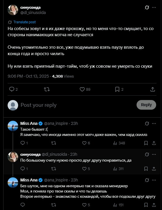 >>6311938 Ля, ну нормально же все начиналось. Несколько офферов на менеджера по маркетингу, я так понимаю, в валюте, как она и хотела. Лучше бы согласилась, можно было бы порадоваться хотя б.