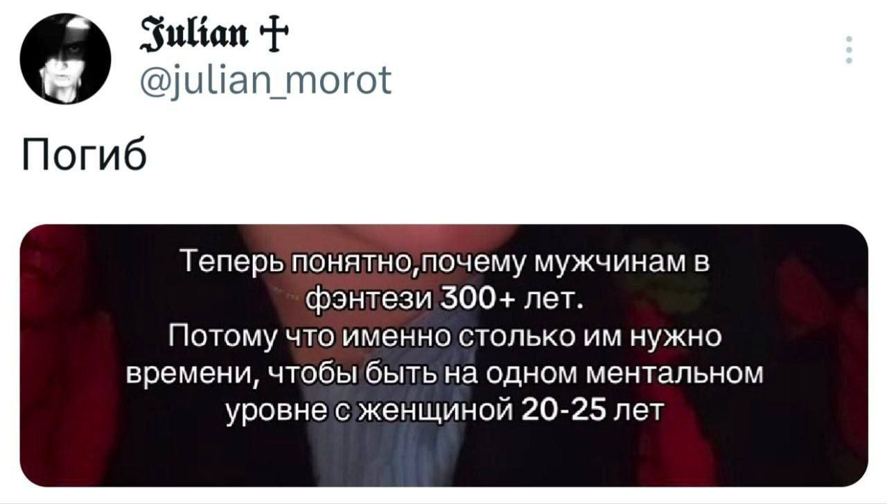 >>6339761 >Ну на самом деле Гоуст точно нет, у него устоявшаяся внеха. Северус Снейп передает привет. Ничего не имею против существования негров как таковых, но не тогда, когда ими заменяют персов с каноничным белым лицом. Так что... >>6339465 Дык надоело, мое додумывание по другим играм расползлось. Здесь только получился следующий спонтанный казус >есть чувак по кличке Роуч >roach - плотва, еще один вариант - таракан >лошадь Геральта зовут Плотва >в колде Роуч погиб >он же после смерти внезапно попадает в другой фандом и Геральт в полном ахуе падает с какого-то чувака в камуфляже, в которого превратилась его лошадь и это при том, что фандом Ведьмака мне неинтересен совсем, а колда - так, чуть-чуть.