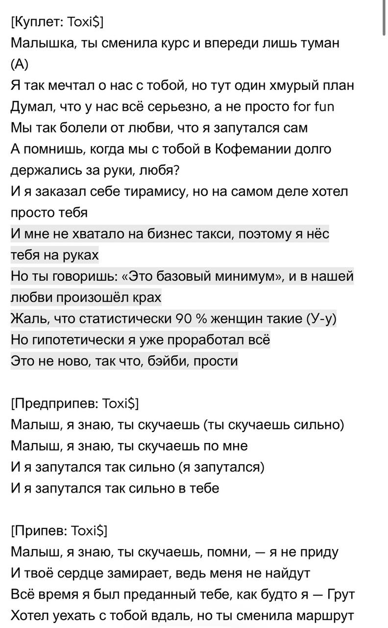 А кто слушал новый альбом Токсиса? Там правда есть какие-то отсылки на Генсуху? Я не могу его гнусавый голос слушать, думала тексты почекать на наличие жирных отсылок