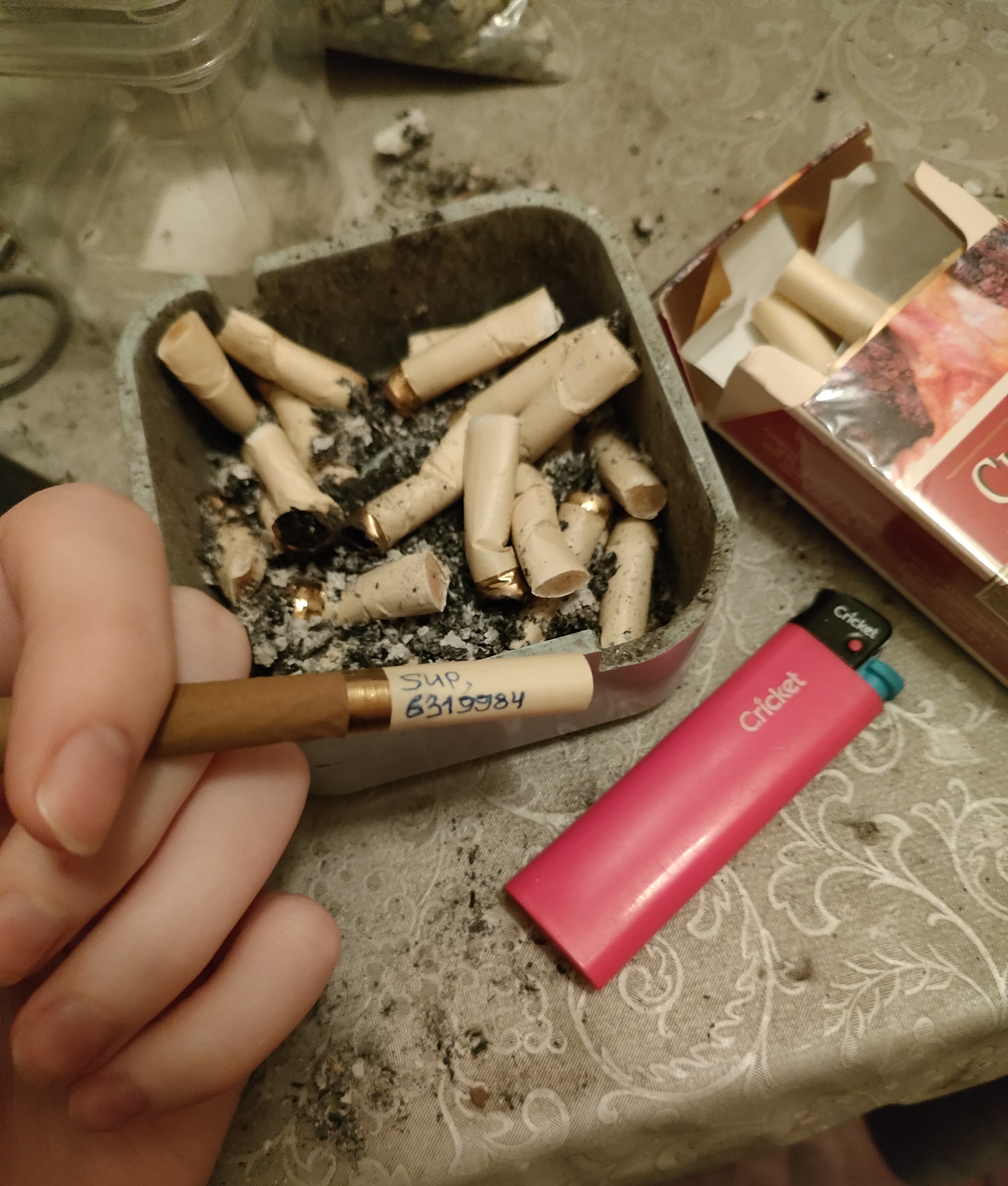 Вейпить начала с 18, насмотрелась на парня бывшего и на одногруппников в колледже, захотелось попробовать, а потом подсела. около полтора года назад бросила, но перешла на сигареты, курю по пачке в день, сначала такие же >>6318452 после из-за цены на play с кнопкой перешла, чтоб тратить меньше. Была попытка бросить вместе с нынешним, но он сорвался, и у меня вся мотивация полетала в чертям, а после он держался, а я около месяца пиздела и курила, в итоге скрылось и вместе курим + подсела немного на снюс как на замену курения, в данный момент более тошноту вызывает, чем альтернативу. Оч хочется бросить, но выдержки никакой нет, работа стрессовая, и без сижек буквально истерики и слезы, а так в апатичном спокойном вайбе нахожусь и жизнь легче кажется. Курю прямо в комнате, по поводу запаха вообще пох