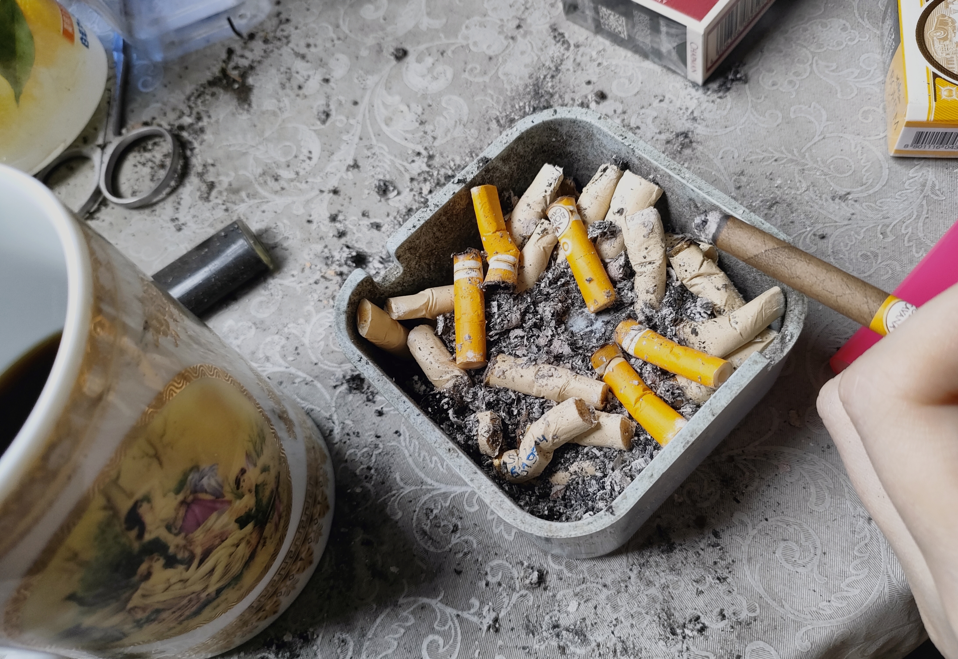 Куришь ли ты дома? Ухудшилось ли здоровье (желтеют зубы)? Сколько штук в день уходит, денег в месяц. Есть ли пепельница Сначала завтрак или сигаретка?