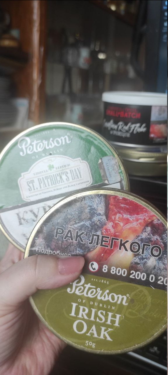 По трубочному щас - пикрилы, в пакете еще дешманский кавендиш от амфоры. Еще есть петерсоновский бленд с латакией, но мне она не зашла, слишком отдает креозотом. Черная банка с периком - топ вообще, зашла на ура. Irish Oak давно в любимых, но по мне это сугубо летний табак и обязательно уличный, даже если есть возможность покурить в помещении. Его надо раскуривать где-нибудь на природе в идеале. Ну а Патрик - это лимитка была, сладенькая вирджиния с чем-то там еще в смеси, на холодное время года и лучше в помещении.