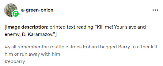 >>6324060 А он может. Ну вообще я это очень давно шиперю и любовь давно перетекла в увожение, особенно за то как много злодеев писали опираясь на эту фигню между ними, и я теперь могу переживать любимую динамику в бесконечном количестве итераций.