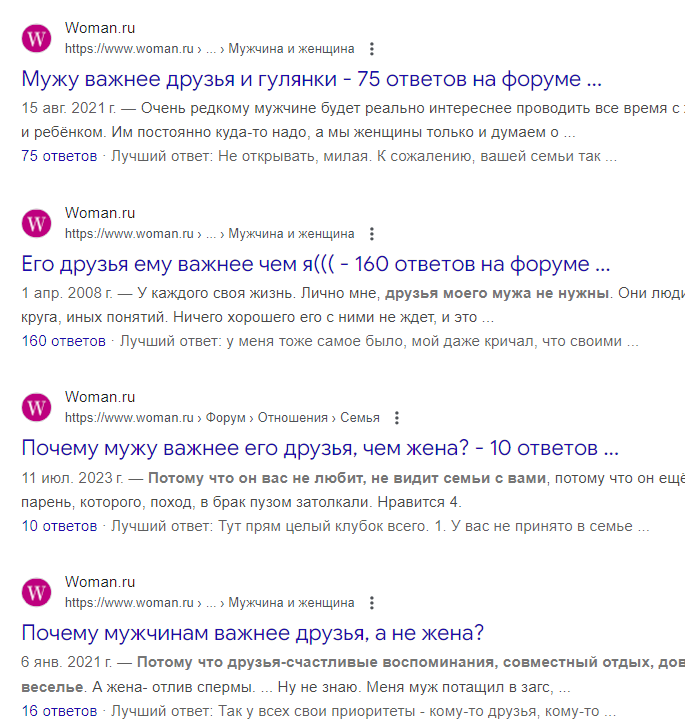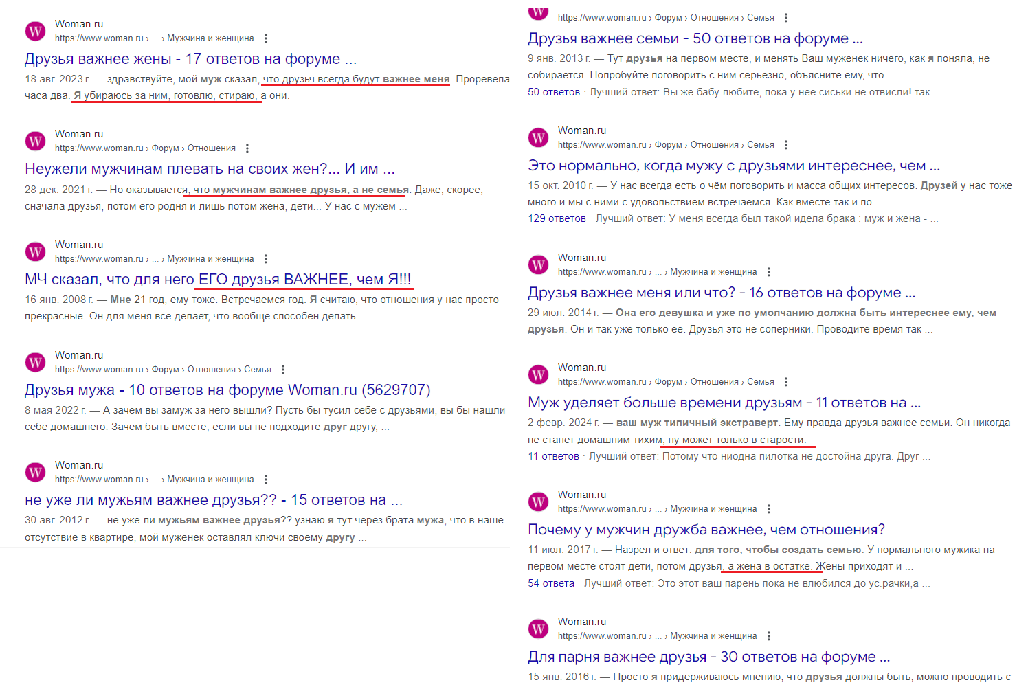 У меня вот были подруги, которые также по патриархальной прошивке ставили хуев выше дружбы и забивали на подруг, так все потом жалели и плакались, что хуй их заебал конкретно, но они не могут его кинуть, потому что он единственный чел с близкого окружения остался и без него у нее никого не останется, а как еще искать близких подруг она не знает, так как мы были знакомы еще с начальной школы и дружба сама по себе развивалась, а во взрослом возрасте найти такую подругу тяжело или уже почти невозможно
