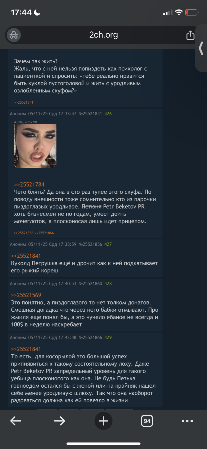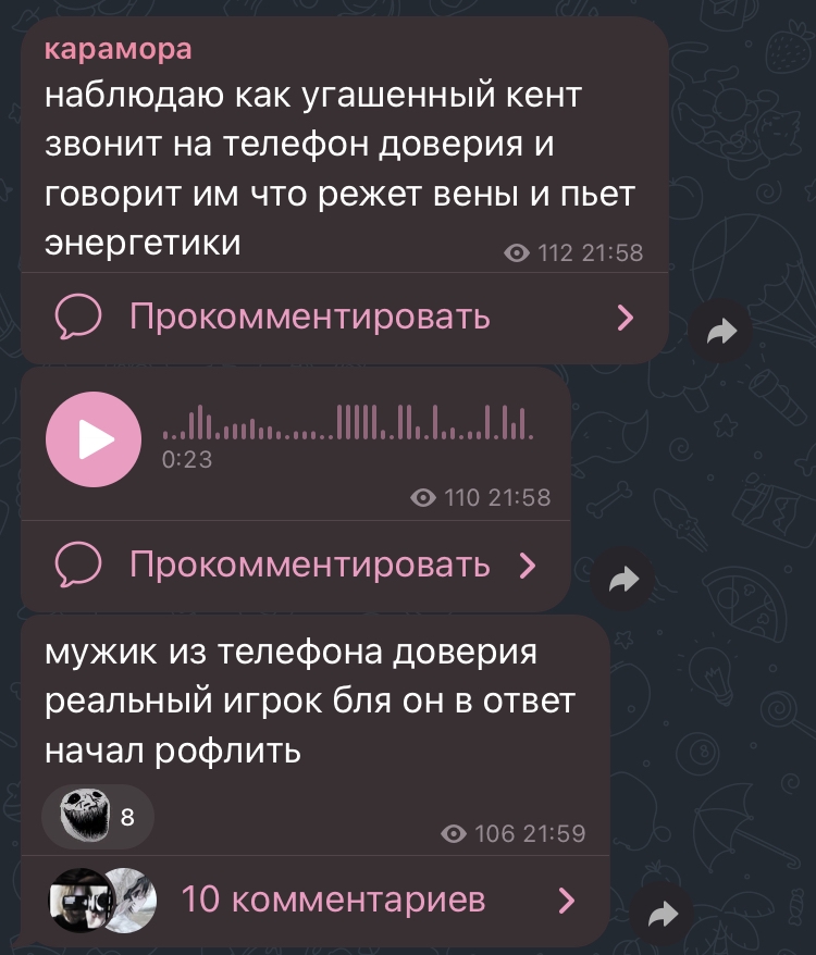 Тем временем к проститутке караморе прилетели те самые ужасные родители из-за которых она не закончила школу, упарывала наркоту и стала подстилкой мужиков. Но она их заигнорила и метнулась кабанчиком к своему новому кунчику, который помимо нее общается с другими тян, а эта пикми, видимо, считает, что у них эксклюзивные отношения