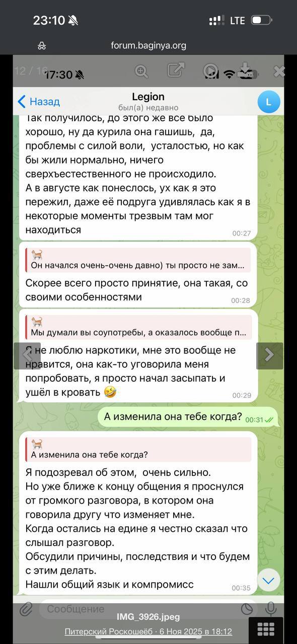 >>6327630 Ну я не говорила, что нельзя ходить в гости до брака или приводить к себе в квартиру (не с вещами, не оставлять регулярно жить на выходные). Можно обсуждать кому что как комфортно. Когда люди встречаются по несколько месяцев, рано или поздно увидят человека со всеми своими плюсами и недостатками, в том числе бытовыми. А гарантий никаких вообще нет относительно того комфортна ли будет совместная жизнь. Может чел вообще какой-то темный гений-психопат и начнет бить спустя пять лет. Маловероятно, но все же всего не предугадать. Женщина не пробник жены. Вообще всех мужиков, что спрашивают «а ты готовишь/убираешь/хозяйственная?» предлагаю скипать как и тех, кто спрашивает «а какая ты в сексе? В попку дашь?». Это галимые паразиты, которые видят в женщине функцию. Я вот сейчас хожу по свиданкам, и мне каждый мужик говорит «а ты какая в сексе? А тебе сколько надо? А ты скажи, а то вдруг мы начнем встречаться, а не подойдет друг другу в сексе.»