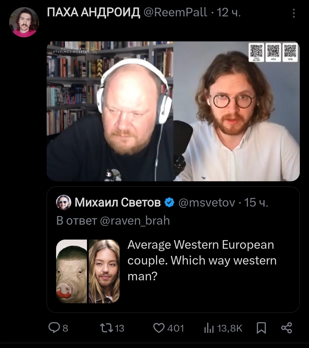 Он явно запал на Максинку. И после того, как Максинка Фёдора забанил, тот нажрался на стриме, включил штефанова с максинкой и начал ныть, что русские люди должны хотеть максинку зарезать в подворотне.