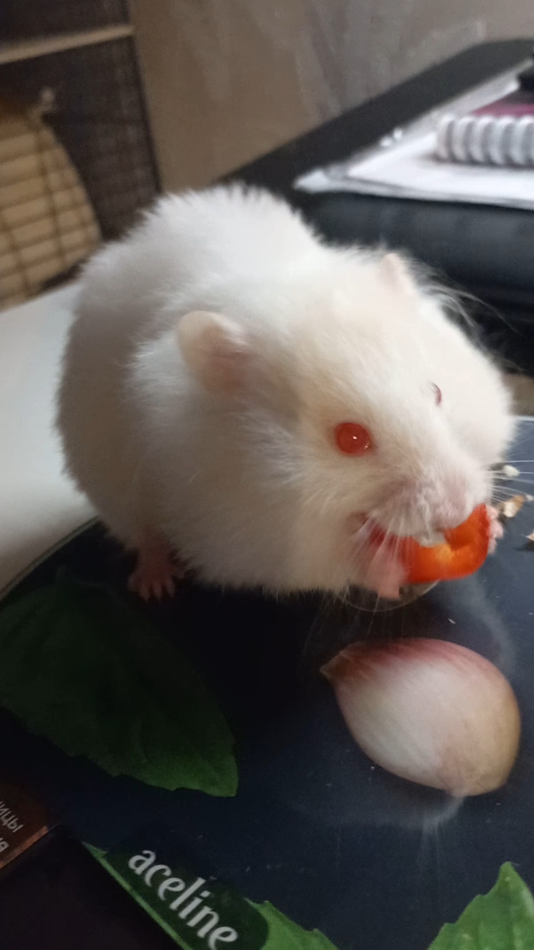 Почти два года жил джунгарик. Мы частенько его выпускали побегать по комнате, он спал за шкафом, а ночью возвращался в клетку. Пока был молодой, удавалось его уложить спать ненадолго у себя в ладошках. Когда его не стало, было так больно, словно вырвали часть души. В тот день он снова пошёл спать за шкаф. А я, вечером, готовя салат, как обычно отрезала ему кусочки овощей и отложила, чтобы угостить, когда вернётся. Но он не вернулся ночью и на следующий день его не было даже слышно. Мы искали, думали, он залез куда-то и гасится, а когда отодвинули шкаф, он лежал мертвый. Я так плакала, положила его в гробик из коробки, он был такой холодный, а рядом с ним положила те кусочки овощей, которые он должен был схрумкать, когда вернётся. В первые дни я приходила домой и чувствовала такую пустоту, не покупала овощи. Скучаю по своему Хомочке, самому мягкому, умному и любимому хомячку.