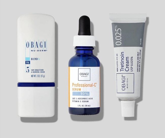 >Вечером: на тыльной стороне ладони смешайте небольшое количество средства Obagi Nu-Derm Blender с небольшим количеством крема Obagi Tretinoin Cream 0.0.25% и нанесите на лицо и шею.