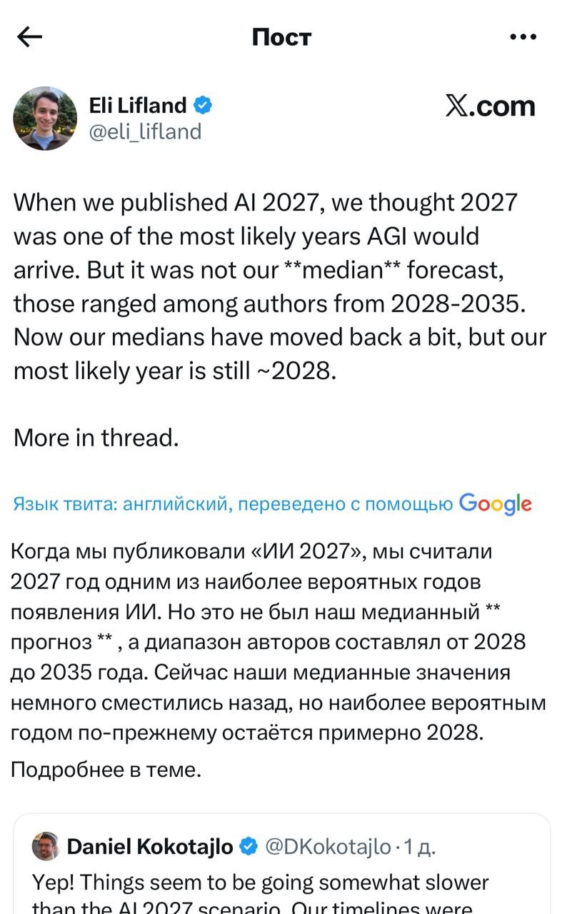 >>6345361 AI 2027 - это самая абсурдная хуйня, которую я читала в жизни. Я НЕ понимаю, почему она так расфорсилась. Самое тупое - некоторые мои коллеги её на серьезных щах обсуждали, а мы на секундочку как раз нейросетками занимаемся. Пиздец, до сих пор горит. Когда же этот пузырь ллмный уже бахнет, сил моих больше нет.