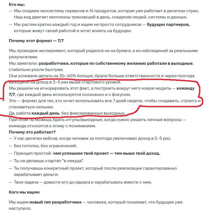 Вот кстати. Самая пиздатая вакансия (и отзывы у компании) была у одного из крупнейших букмекеров России. Тебе и вилку сразу указали (нормальная такая зп), и микротестик на описание опыта сделали (что отрезает автоотклики), и рассматривали только тех, кто пруфанёт опыт через книжку (сами по тк оформляют), и хрюшка написал в чате условия и предложил ответить на вопросы, и вакансию только 2 дня держали, а потом прикрывали. Вакансия разраба была, жаль, что у меня до собеса так и не дошло.