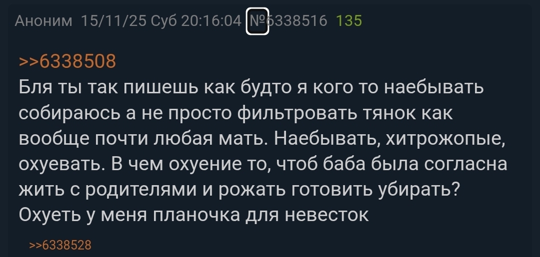 >>6338606 А ведь местная сиса была права. Тот тгк муренач броуди - это стопроц порождение Пиявыча. Прям совпадают тейки и словесные конструкции и в целом общая степень обиды-бугурта