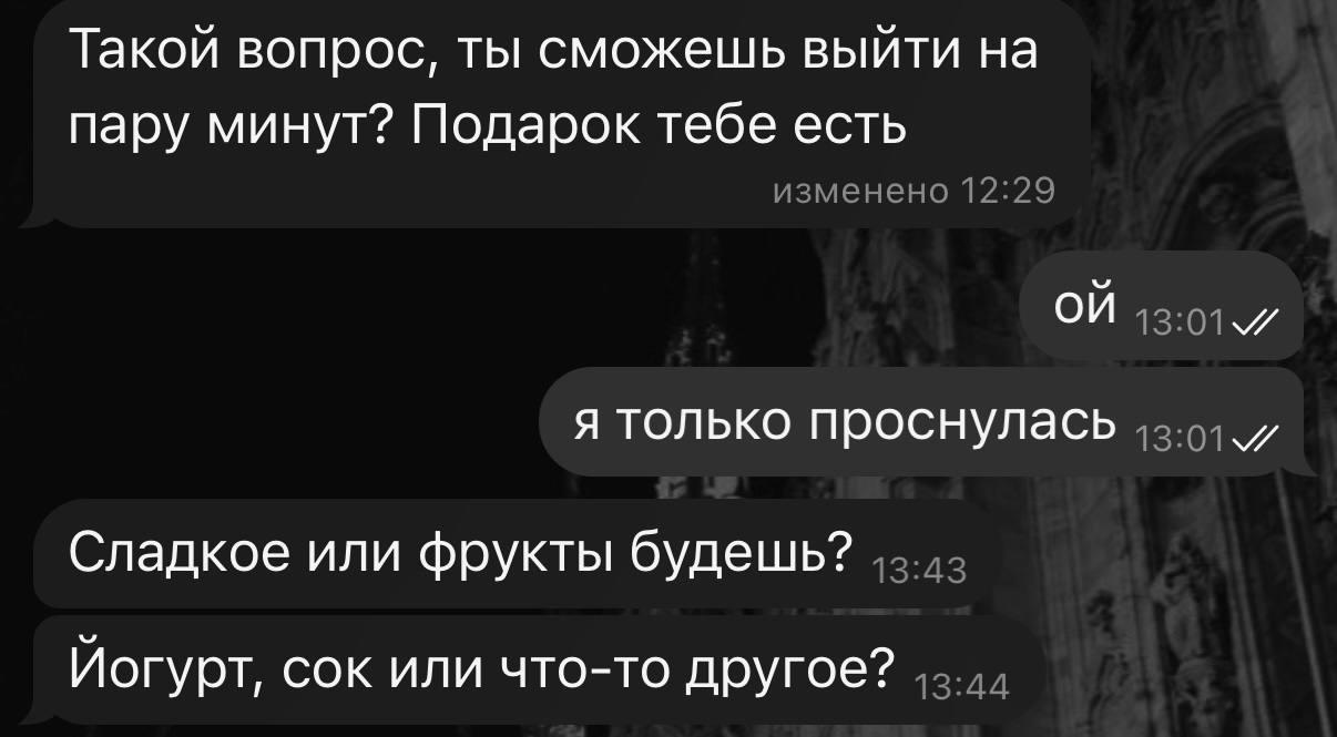 >>6340921 Ты такая моя преданная фанатка, мне это льстит. Так во сколько хавку привезёшь? Раньше 12 не встаю, не беспокой меня.