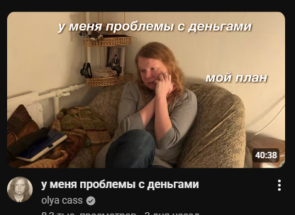 про деньги с 19ой минуты, бомжиха не вывозит инфляцию и больше не может позволить себе такси в 2 часа ночи, поэтому приняла тяжелое решение, что каждое второе видео будет выходить на бусти