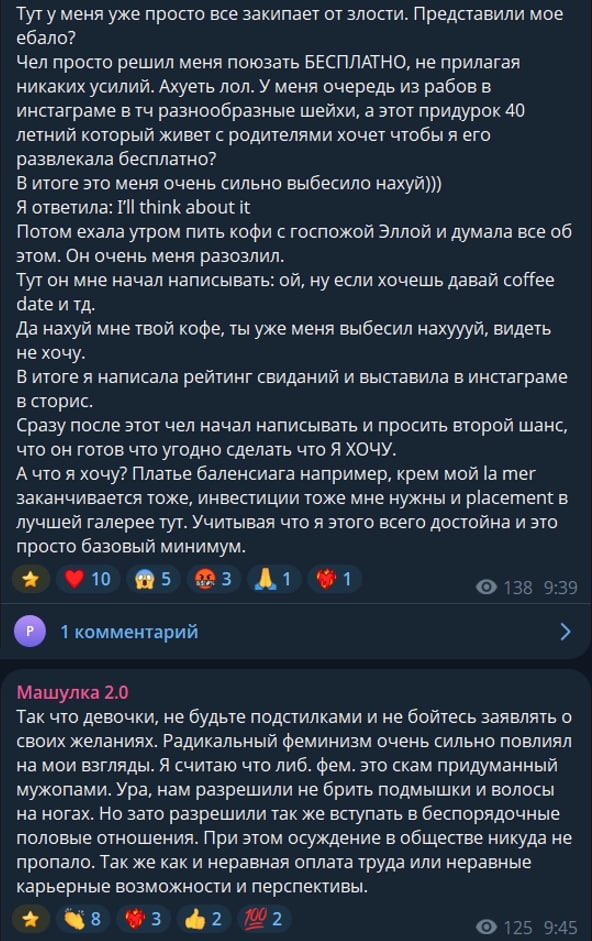 А кто-нибудь тут знает про эту сису? Она радфеминистка и подруга кк из Англии. Увидела последний пост в её тг и показалось, что это камень в огород кищук